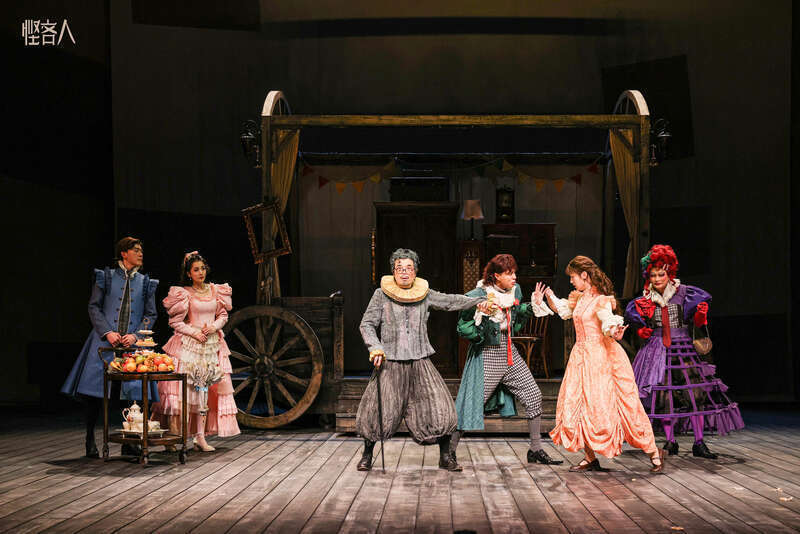 除了剧本的改编,演员的舞台表演也让人惊喜。傅迦饰演的“阿巴贡”和剧团班主,滑稽可笑之余又充满了现实性,更能让人产生悲悯;宋建霖、赵泽栋饰演的瓦莱尔和剧团演员,戏外与戏中相互配合,更具反差感;李珀饰演的雅克大师傅,以及徐白晓“反串”饰演的弗劳辛,诠释出了夸张又真实、跳跃又严谨的人物形象;张鑫名、王君瑞等年轻演员所组成的青春阵容,也释放出了喜剧的舞台能量。